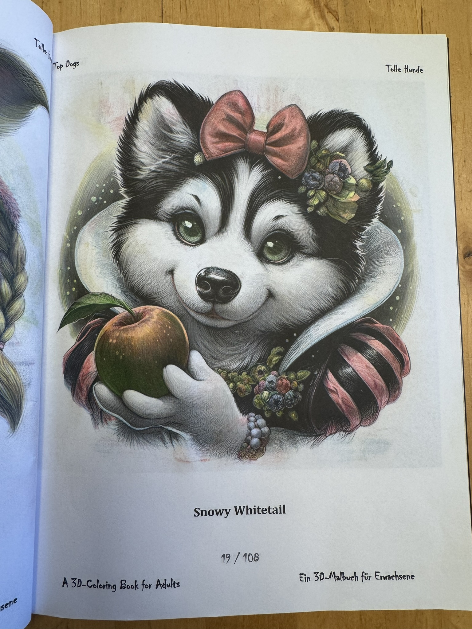Top Dogs 100+ Pages · Bilingual (DE/EN) Famous dogs as 3D grayscale motifs – bilingual (German/English). A coloring book full …